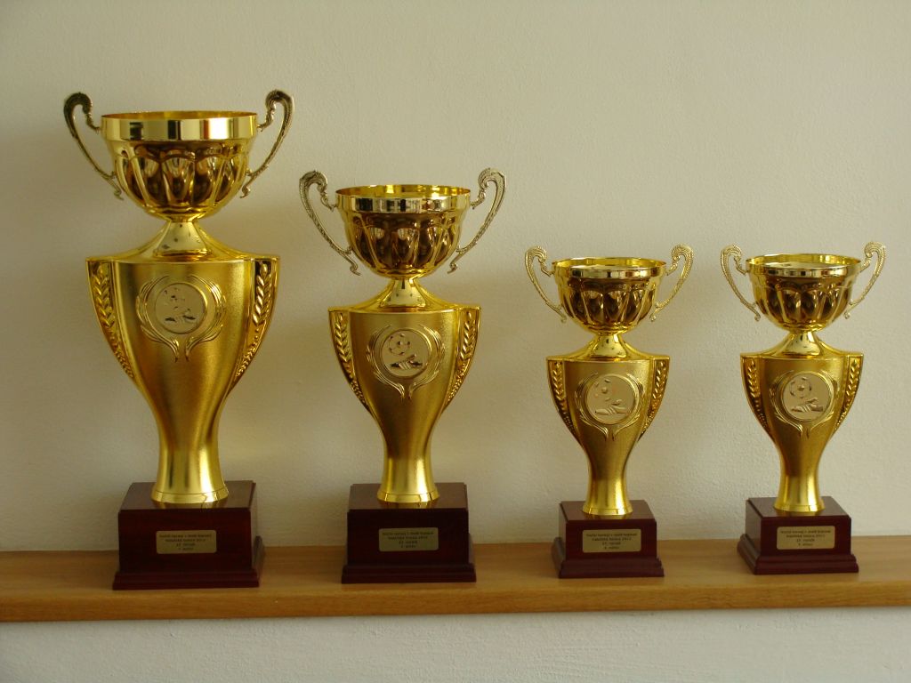 poháry pro nejlepší mužstva na Nočním turnaji v malé kopané 2012